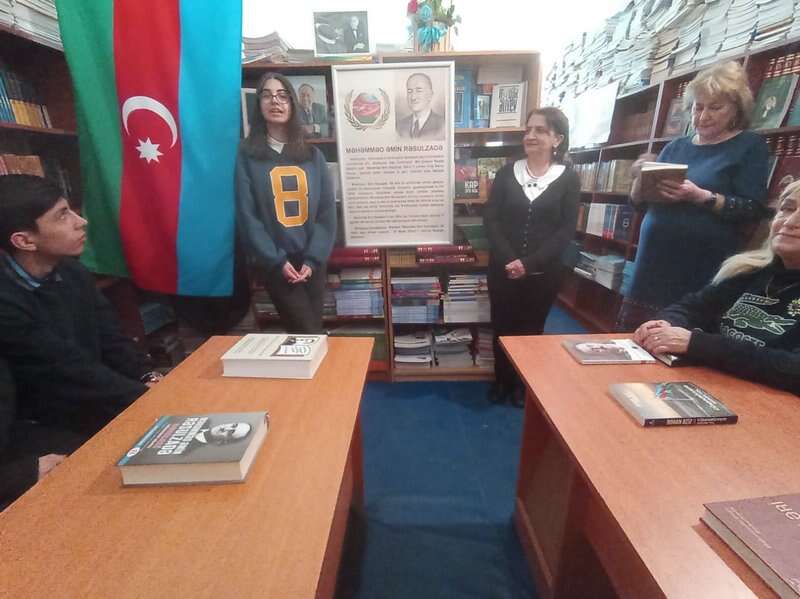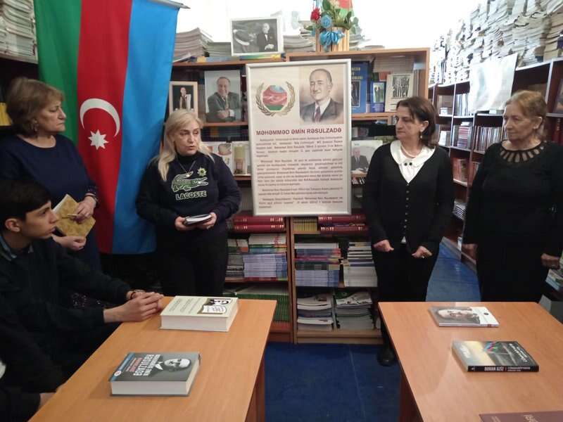 M.Ş.Vazeh adına Mərkəzi Kitabxananın əməkdaşı Lalə Səlimova M.Ə.Rəsulzadənin həyat və siyasi fəaliyyətinin əsas məqamları ilə şagirdləri məlumatlandırdı. Mərkəzi Kitabxananın əməkdaşı Gülnarə Cəlilova, məktəbin müəllimləri Məlahət Rəvanova və Samirə Məmmədova çıxışlarında Məhəmməd Əmin Rəsulzadənin müstəqil Azərbaycan dövlətinin qurulmasında xidmətləri ilə yanaşı, ədəbi yaradıcılığının da diqqətəlayiq olduğunu vurğuladılar. Məktəbin 10-cu sinif şagirdləri – Arif Allahverdiyev, Aylin Həsənova, Leyla Abbaszadə, Şahin Həşimov və digərləri vətənpərvər şeirlər söylədilər, M.Ə.Rəsulzadəyə həsr olunmuş çıxışları ilə bu unudulmaz şəxsiyyətin xatirəsini böyük ehtiramla yad etdilər.