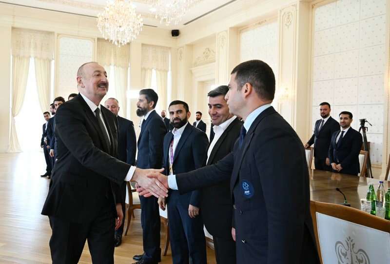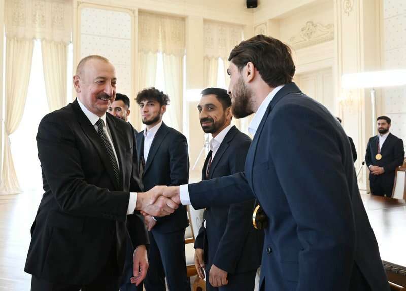 Milli komandanın baş məşqçisi Elşad Quliyev: Hörmətli Prezidentimiz, öz adımdan, komandanın adından təşəkkür edirəm ki, bizi dəvət etmisiniz. Biz 2022-ci ildə də Avropa çempionu olanda Siz bizimlə səmimi söhbət etdiniz və tapşırıqlarınızı verdiniz. O gündən sonra da biz çalışırdıq ki, yeni nailiyyətlər əldə edək. İnşallah, qismət oldu, dünən dünya çempionu olduq. Bunun üçün Sizə çoxlu təşəkkür edirik və xalqımıza, federasiyamıza, “Çox sağ ol!” deyirik. Sağ olun.