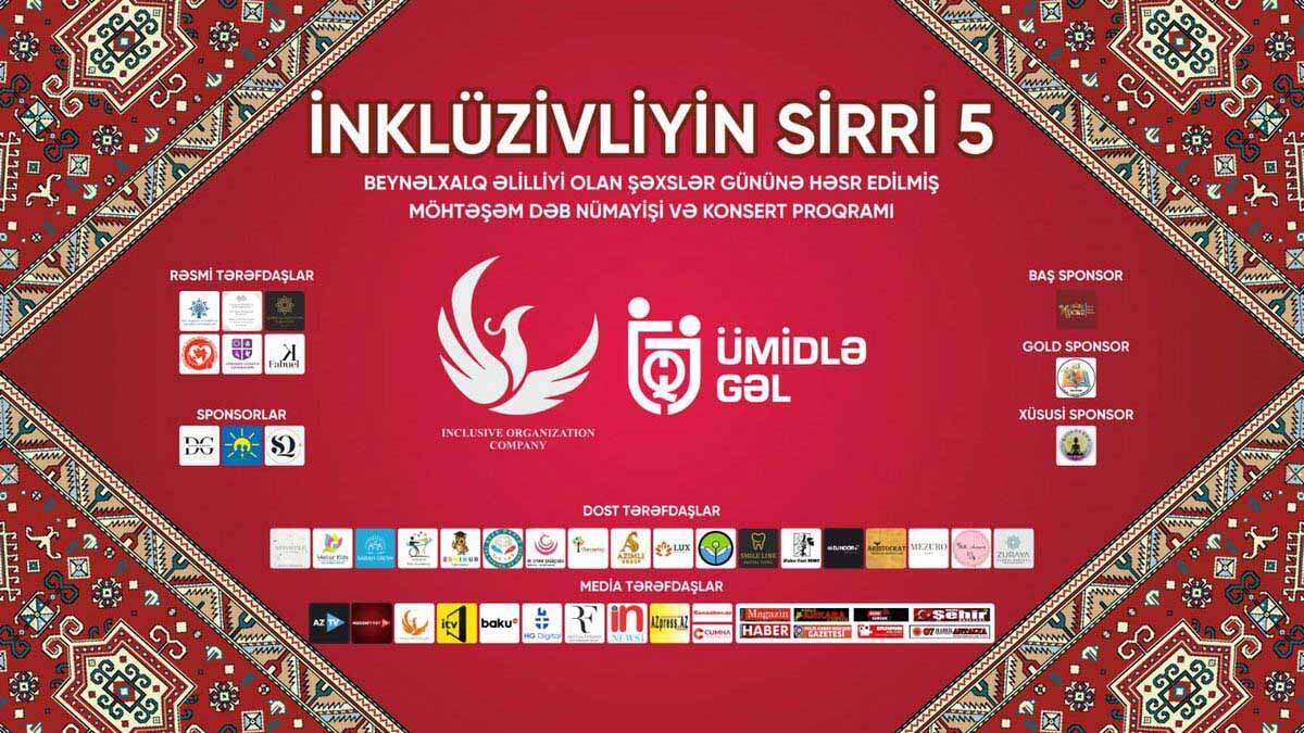 3 dekabr tarixində Nizami Kino Mərkəzində “Konstitusiya və Suverenlik ili” çərçivəsində “Inclusive Organization Company” və “Ümidlə Gəl” xeyriyyə layihəsinin birgə təşkilatçılığı ilə “İnklüzivliyin Sirri 5” adlı genişmiqyaslı konsert proqramı baş tutub. Tədbir Yeni Azərbaycan Partiyası Nizami Rayon Təşkilatı, Azərbaycan Respublikası Mədəniyyət Nazirliyi Bakı Şəhər Mədəniyyət Baş İdarəsi, Qərbi Azərbaycan Təravəti, Xəzər Universiteti və Vineyard XDİ-nin rəsmi tərəfdaşlığı ilə gerçəkləşdirilib.