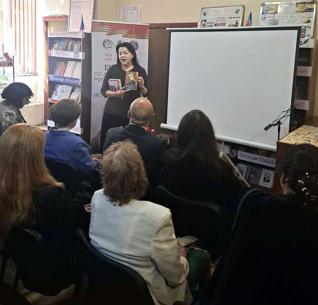 İsmayıllı rayonunun İvanovka kəndindən gələn digər qonaq, şair Tatyana Minnikova yazdığı kitab haqqında məlumat verdi və Böyük Vətən müharibəsinə həsr etdiyi şeirini oxudu.