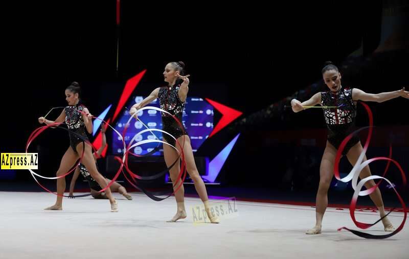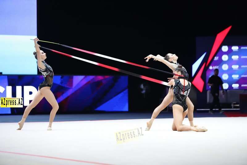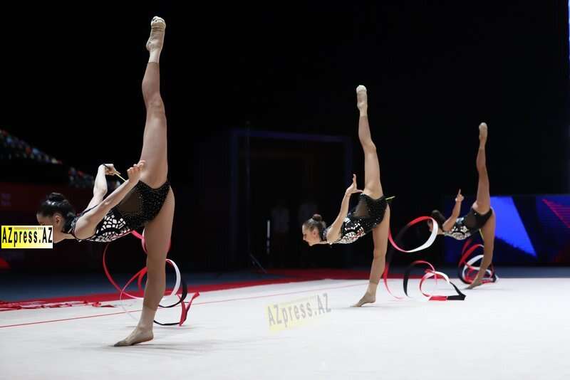 Böyüklər arasında qrup hərəkətlərində 3 top - 2 halqa şəklində çıxış edən Azərbaycan komandası qızıl medala layiq görülüb.
