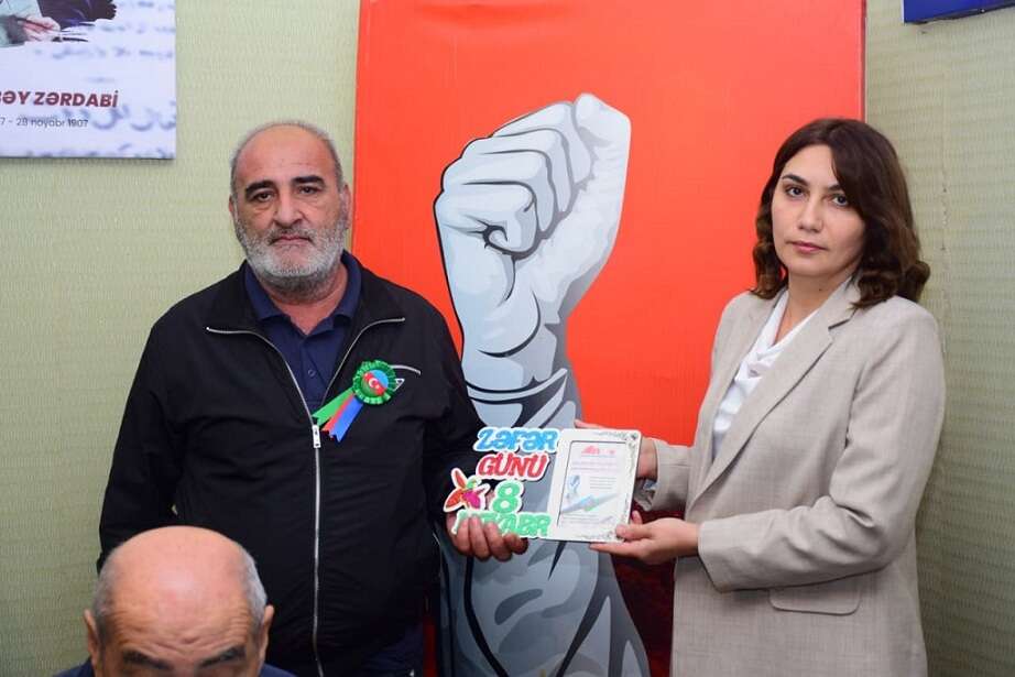 Sonda AJB Masallı rayon təşkilatının xatirə hədiyyələri təqdim olunub.