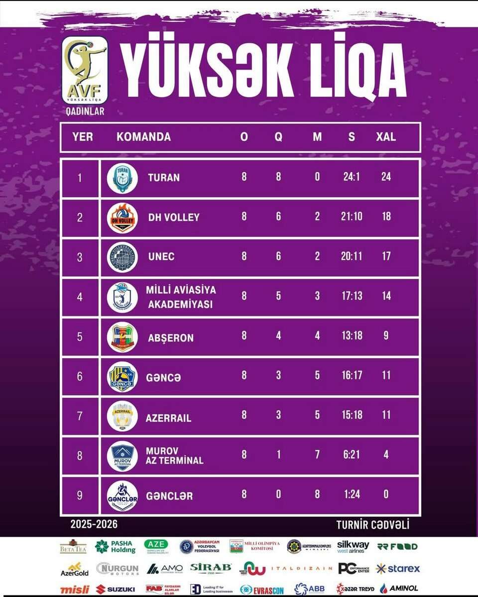 9-cu tur çərçivəsində isə "Milli Aviasiya Akademiyası" qadın voleybol klubu öz meydanında çempionatın debitanti olan "DH Volley" klubu ilə bacarmayıb - 0:3 (23:25, 17:25, 21:25).