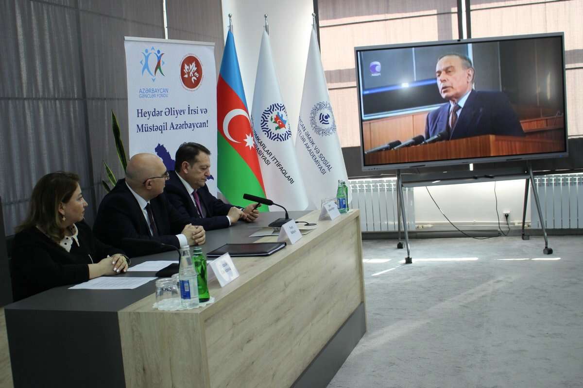 Sonuncu tədbir Azərbaycan Əmək və Sosial Münasibətlər Akademiyasında keçirildi. Tədbirdə giriş sözü ilə çıxış edən Akademiyanın rektor vəzifəsini müvəqqəti icra edən Fərid Babayev Ulu Öndər Heydər Əliyevin dövlətçilik yolunun əsas mərhələləri və liderlik xüsusiyyətləri haqqında danışdı. Təşkilatın sədri Tünzalə Cavadova da Ulu Öndərin həyat yolu, siyasi fəaliyyəti və idarəçilik modeli haqqında məruzə ilə çıxış etdi. Akademiyanın sosial iş fakultəsinin dekanı Nurəngiz Mikayılova, həmin akademiyanın iqtisadiyyat və idarəetmə kafedrasının müdiri professor Vilayət İsmayılov da öz çıxışlarında Heydər Əliyevin banisi olduğu Konstitusiyanın yaradılması, Azərbaycanın beynəlxalq arenadakı mövqeyinin mühkəmlədirilməsi və “Əsrin müqaviləsi”-nin ölkəmizin iqtisadiyyatında böyük rolu olduğundan bəhs etdilər. Sonda gənc tələbələr Ulu Öndər Heydər Əliyevin gənclər siyasətindəki danılmaz rolundan danışdılar. Tədbir tələbələr tərəfindən böyük maraqla qarşılandı.