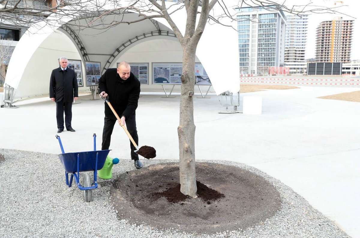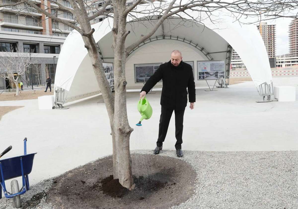 Dövlətimizin başçısı bağın ərazisində dağdağan ağacı əkdi.