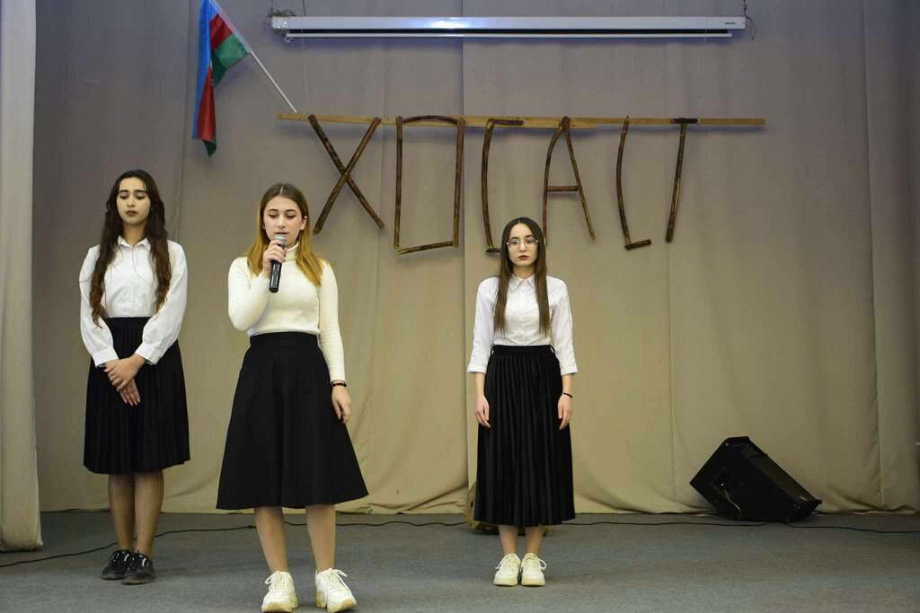Masallı Dövlət Regional Kollecinin müəllimi Kəmalə İmanova bəşəriyyətin ən qanlı faciələrindən olan Xocalı soyqırımı hadisələrindən, Xocalıda törədilən cinayətlər barədə əsl həqiqətlərin dünya ictimaiyyətinə çatdırılmasında Ümummilli lider Heydər Əliyevin, bu istiqamətdə ardıcıl işlərin davam etdirilməsində ölkə rəhbəri İlham Əliyevin xidmətlərindən danışıb. O, əlavə edib ki, Ali Baş Komandanın 2023-cü il oktyabrın 15-də Xocalı şəhərində Azərbaycanın Dövlət Bayrağını ucaltması soyqırımı qurbanlarının qanının yerdə qalmadığını, onların qisasının alındığını bir daha sübuta yetirdi.