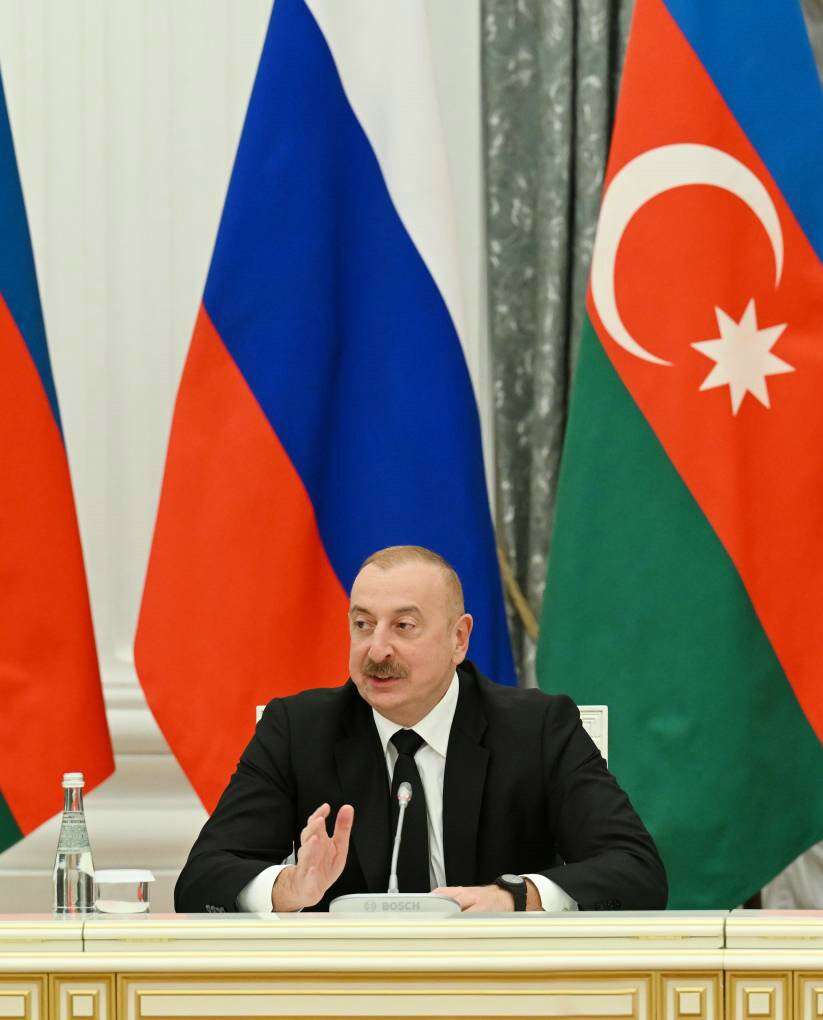 Bu gün sevindirici haldır ki, müasir Rusiya-Azərbaycan münasibətləri dostluq, qarşılıqlı anlaşma, qarşılıqlı dəstək və məqsədyönlülük kimi möhkəm təmələ əsaslanır. Bu gün biz, Vladimir Vladimiroviçin qeyd etdiyi kimi, təkcə böyük nəqliyyat layihələri həyata keçirmirik, həm də “Şimal-Cənub" beynəlxalq nəqliyyat dəhlizinin yaradılmasında fəal iştirak edirik, həm iqtisadi, həm siyasi, enerji, humanitar və bir çox digər sahələrdə fəal əməkdaşlıq aparırıq.