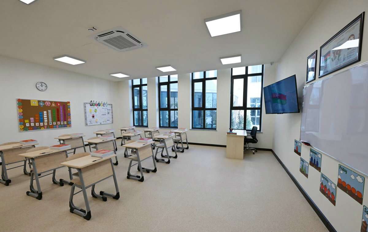 Bildirildi ki, məktəb binalarında kompüter sinifləri, psixoloq kabineti, laboratoriyalar, açıq və qapalı idman meydançaları var. Təlim Britaniya kurikulumuna uyğun olaraq ingilis dilində aparılır. LANDAU Məktəb kompleksinin ərazisində orta ümumi təhsillə yanaşı, məktəbəqədər təhsil üçün ayrıca bina da var. Ümumilikdə, təhsil kompleksi 1100-dən çox şagird üçün nəzərdə tutulub.