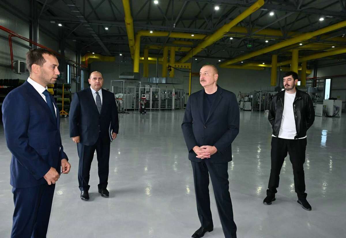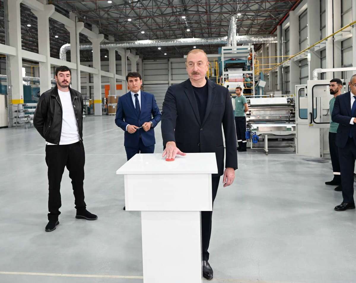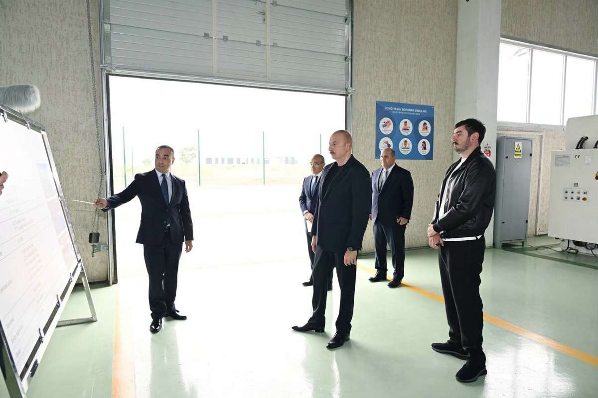 Prezident İlham Əliyev zavodu işə saldı.