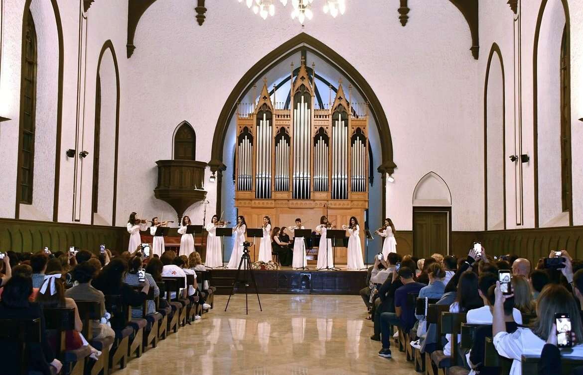 Konsert proqramında Ü.Hacıbəylinin “Koroğlu” operasından 2 rəqs, A.Dadaşovun “Baxvari”, F.Bədəlbəylinin “İthaf”, A.İbrahimov-Bramonun “Şuşa”, Q.Qarayevin “İldırımlı yollarla” baletindən “Laylay” və “Rəqs”, İ.Yohovu “Vivaldisayağı”, İ.S.Baxın “Ave Mariya”, İ.Bramsın “Macar rəqsi”, N.Hessin “Pyes”, K.Bomun “Daimi hərəkət”, N.Rubinşteynin “Cəhrə”, T.Quliyevun “Sevgi valsı” və D.Şostakoviçin “Vals” əsərləri səsləndirildi.