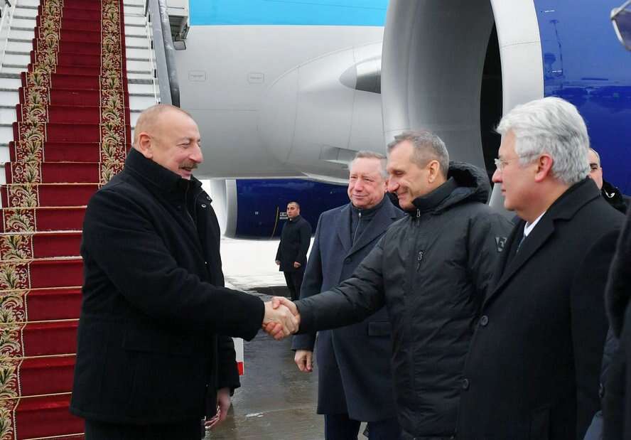 Sankt-Peterburq şəhərinin “Pulkovo-1” hava limanında dövlətimizin başçısını Sankt-Peterburq şəhərinin qubernatoru Aleksandr Beqlov və digər rəsmi şəxslər qarşıladılar.